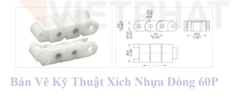 Tải trọng làm việc: 880N (xích nhựa 60P)